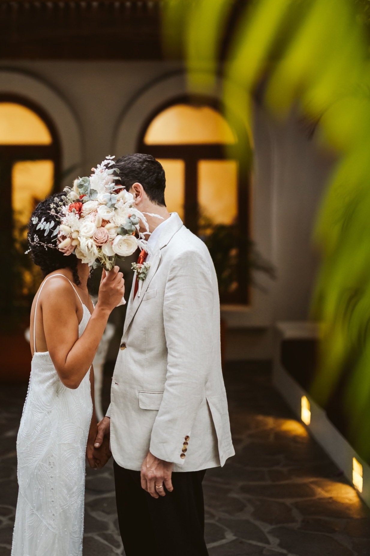 The wedding was a beautiful celebration. We had a wonderful time celebrating for four days in Puerto Vallarta, Mexico with 60 of our loved friends and family at a beautiful private hotel on the beach. Jason and I walked down the aisle together hand in hand. He’d seen the dress around our small apartment, but it was the first time that he saw it on me.